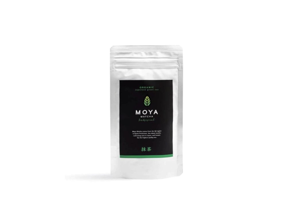 Moya Matcha tradiční má intenzivní zelenou barvu, dobře vyváženou hořko-sladkou chuť a jemnou čajovou dochuť. Ideálně se hodí k pití v tradiční formě, stejně jako k přípravě matcha latte, smoothie a koktejlů. Získává se výhradně z první a druhé sklizně čerstvých listů keřů, které dozrávají pod speciálními slunečními clonami. Díky tomu listy získávají vyšší obsah chlorofylu a l-theaninu a získávají intenzivní zelenou barvu. Po sklizni jsou listy jemně sušeny a strouhány na jemný prášek.